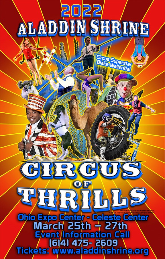 It’s the 70th ANNUAL Aladdin Shrine Circus of Thrills – featuring Circus Superstar, Blake Wallenda! Coming to the Ohio Expo Center & State Fairgrounds March 25th – 27th. For more information, call 614-475-2609 or visit AladdinShrine.org. These Ticket Vouchers can be exchanged by calling the Aladdin Shrine or at the Celeste Center box office (although we recommend redeeming in advance to guarantee satisfaction on seat placement & availability).
